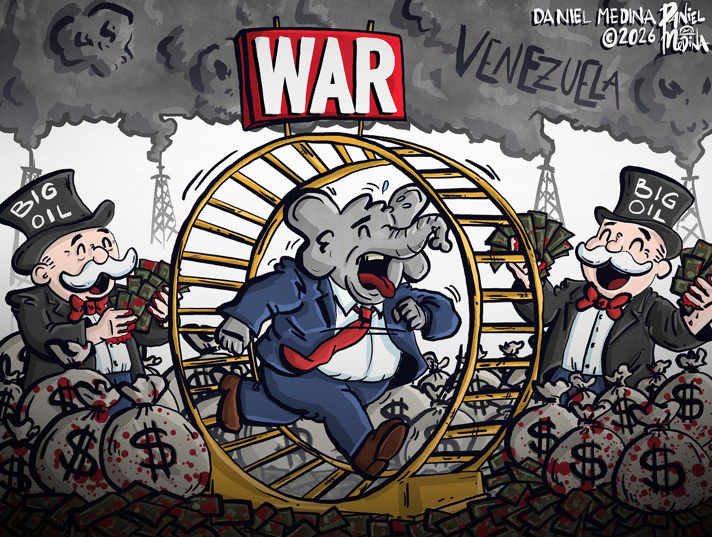 As a talented cartoonist you should be illustrating how *this* "murdering of innocent people" is categorically different than when Obama did it with drones or when Bush did it with tanks or when Clinton did it with blackhawks.
